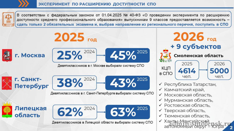 Эксперимент по расширению доступности среднего профессионального образования