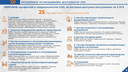 • Эксперимент по расширению доступности среднего профессионального образования