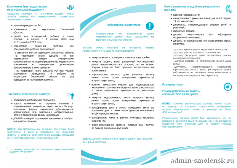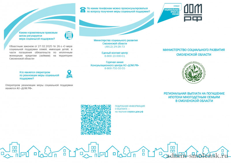 1. В рамках нацпроекта «Семья» на территории Смоленской области предоставляется выплата на полное или частичное погашение обязательств